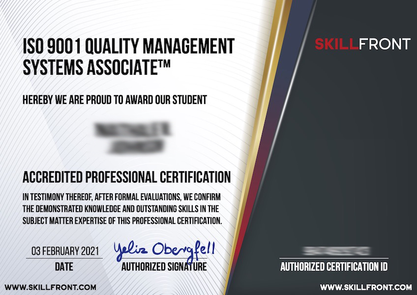 ENROLL Now : ISO 9001 Quality Management Systems Associate™ Skillfront Certification Exam