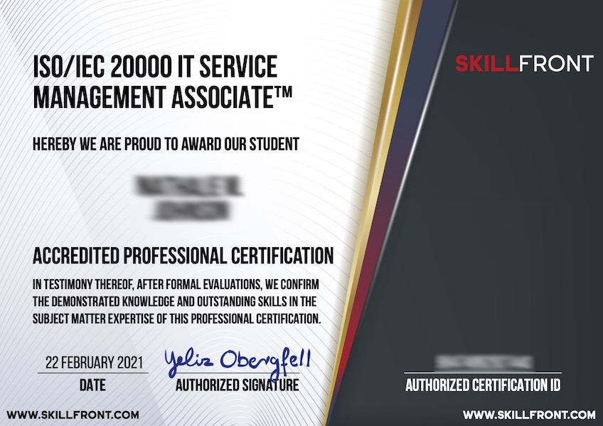 ENROLL Now : ISO/IEC 20000 IT Service Management Associate™ SkillFront Certification Exam