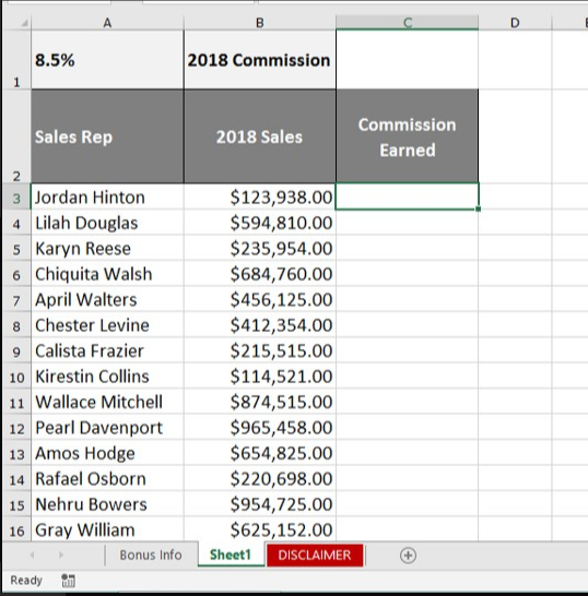 - [ ] =SUM(C2:C4)
