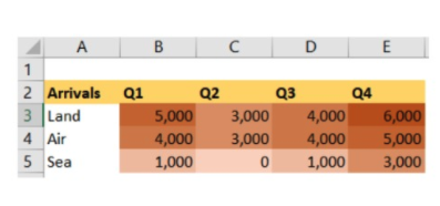 Q132. What is the fastest way to see the data in column E