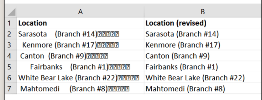 =CLEAN(TRIM(A2)) - [ ]