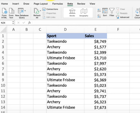 - [ ] Format the data in Column E.