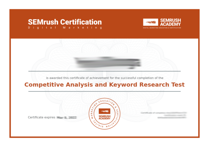 Enroll Now : SEMrush Competitive Analysis and Keyword Research Test Exam Answers 2021